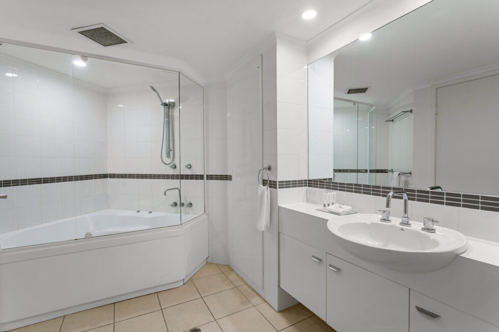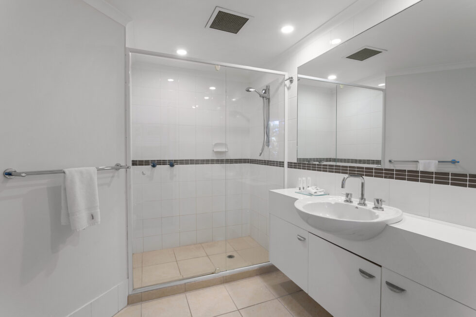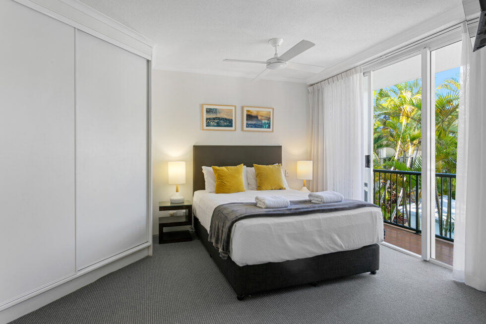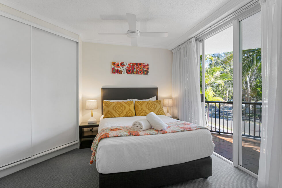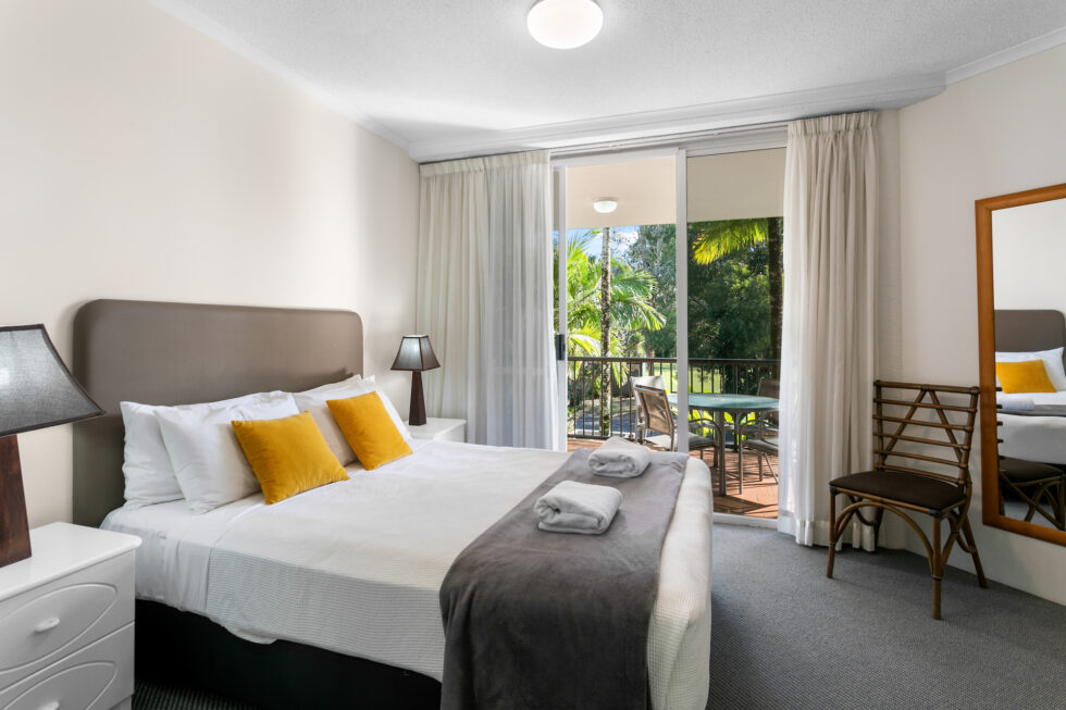 Our Noosa Three Bedroom self contained apartments feature a master bedroom with Queen sized bed and private ensuite. The second bedroom has a Queen sized bed and is serviced by a second bathroom. The third room offers two single beds and are suitable for a maximum of 6 guests.