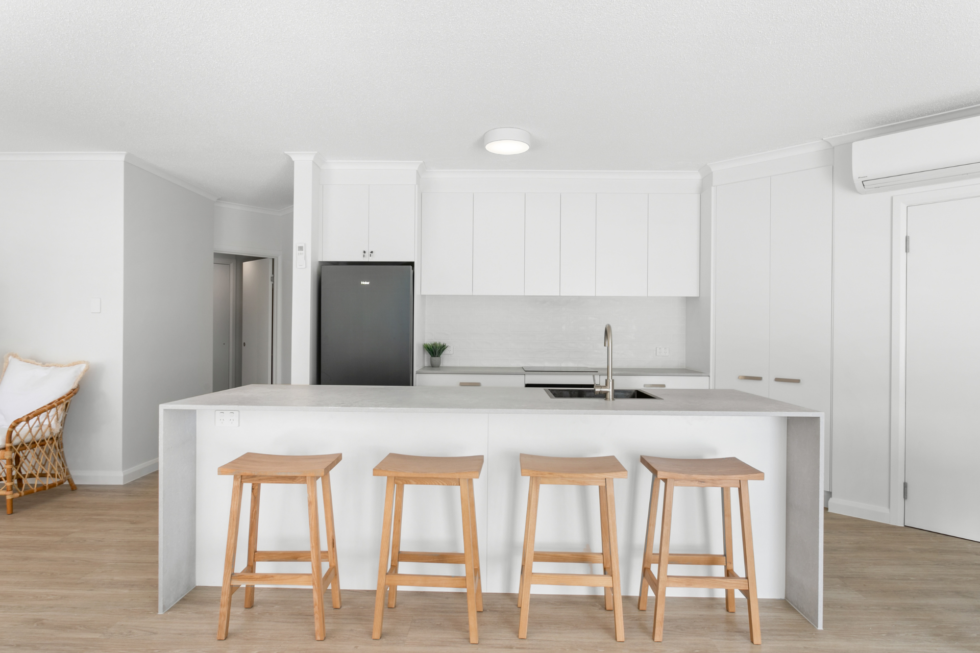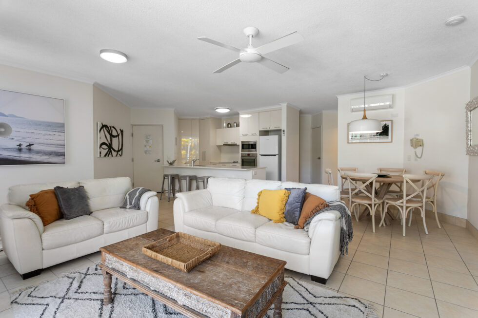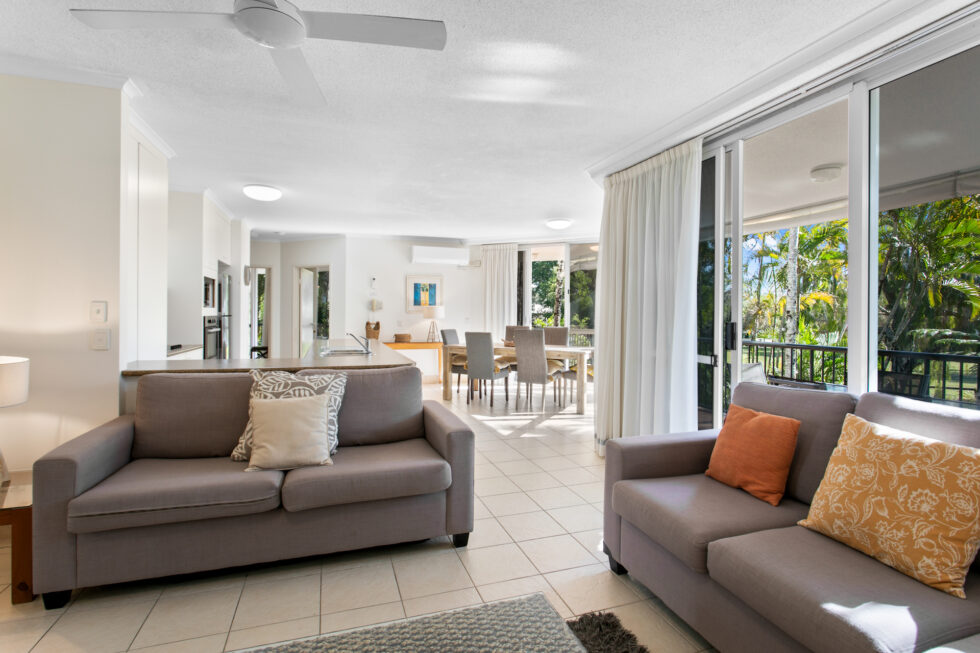Perfect for larger families, our Three Bedroom Noosa Holiday apartments offer reverse cycle air conditioning in the living room, with ceiling fans, Foxtel business IQ with up to 130 streaming channels. Enjoy the convenience of a full-size kitchen with modern cooking appliances and laundry with a washing machine and dryer and a private balcony. All apartments have unlimited free wifi access.