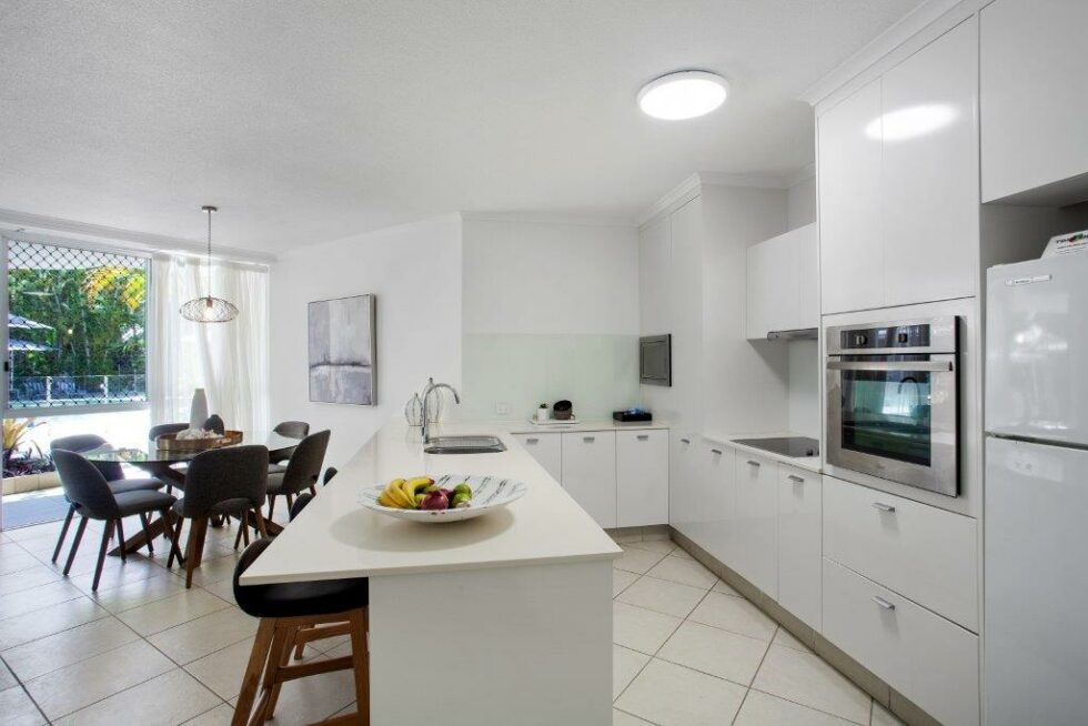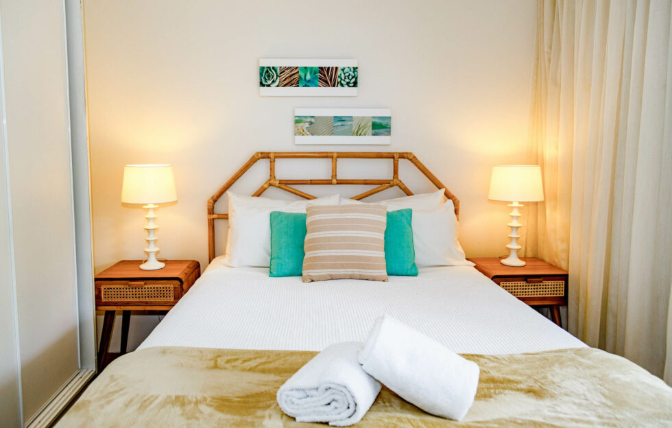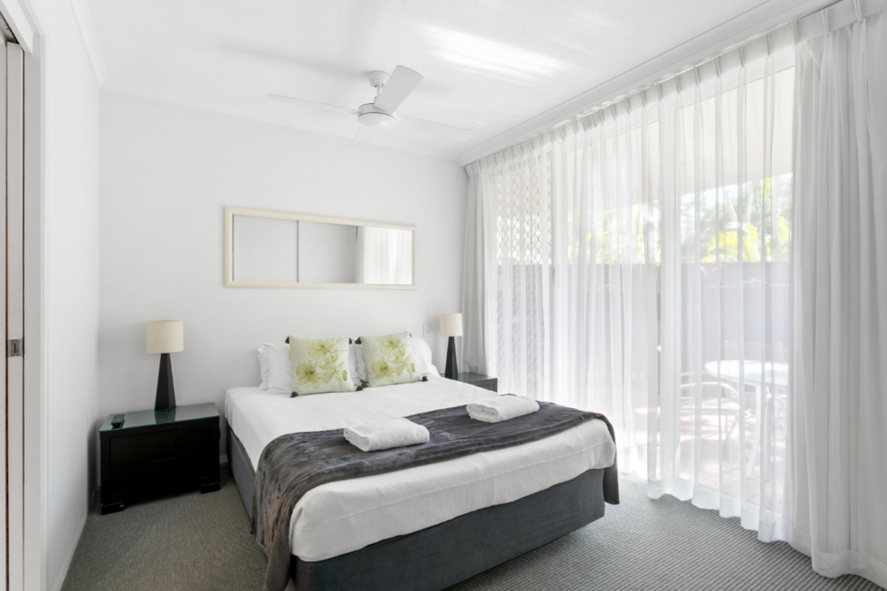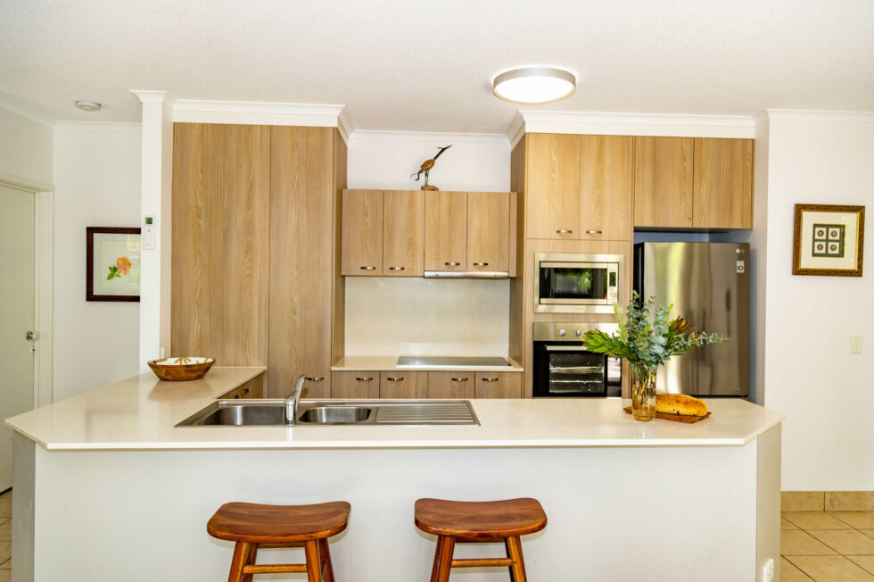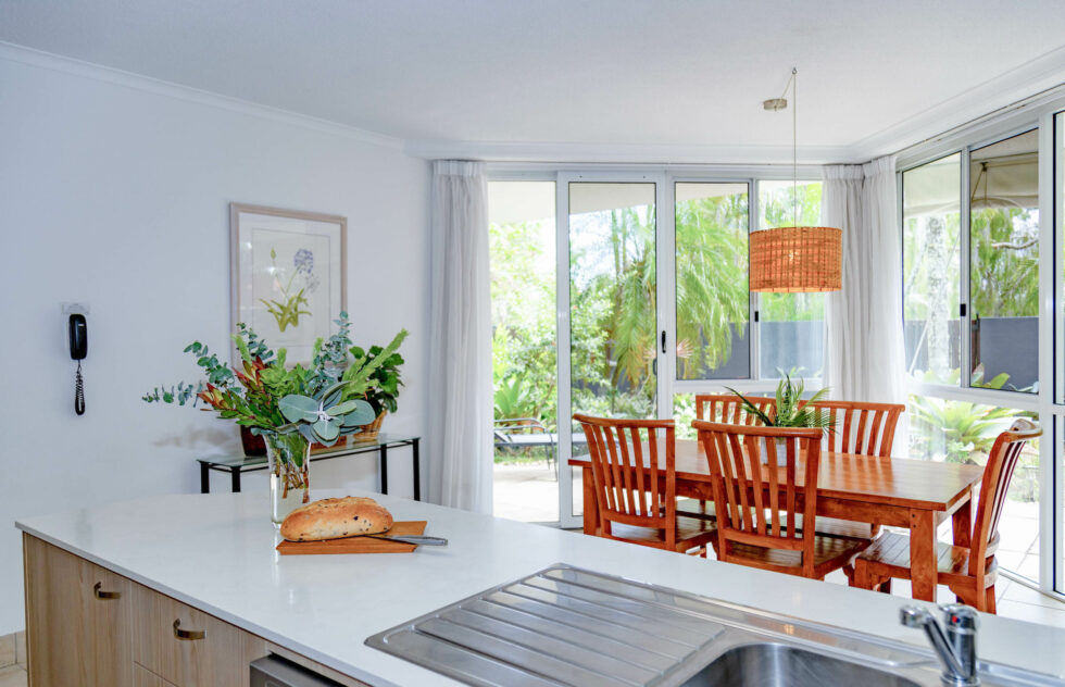 Elegantly decorated, all of our Two Bedroom Noosa Holiday apartments offer reverse cycle air conditioning in the living room, with ceiling fans, Foxtel business IQ with up to 130 streaming channels. Enjoy the convenience of a full-size kitchen with modern cooking appliances and laundry with a washing machine and dryer and a private balcony or courtyard. All apartments have unlimited free wifi access.