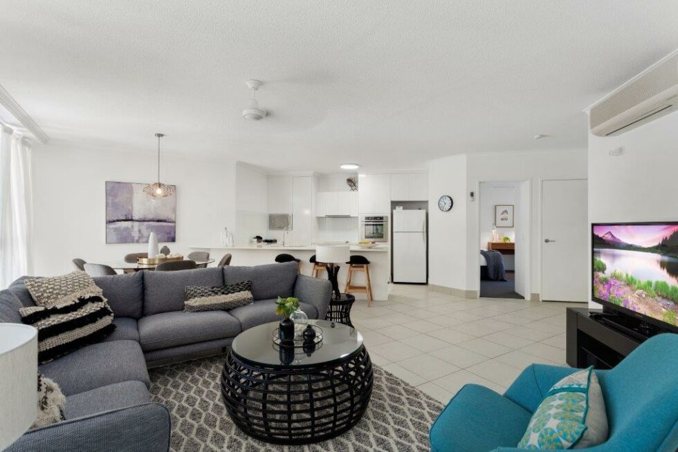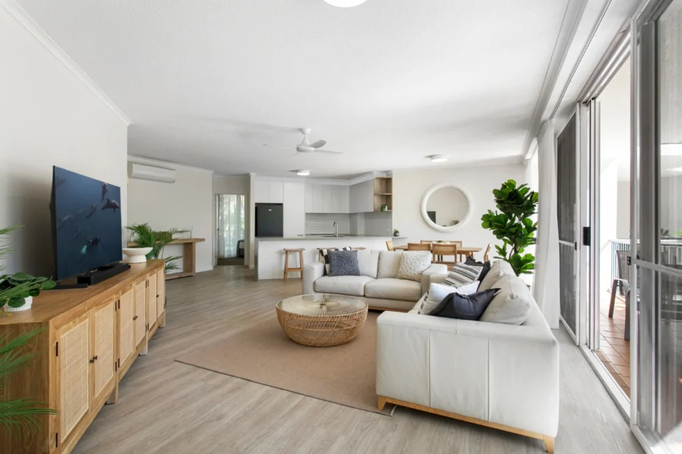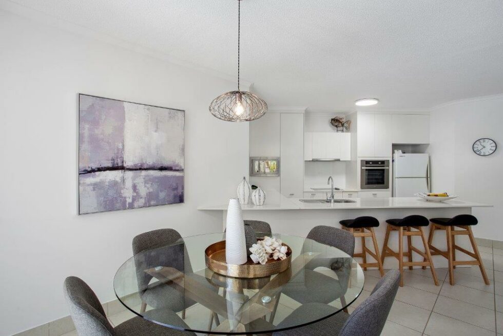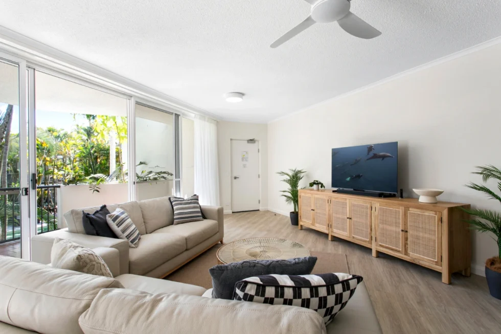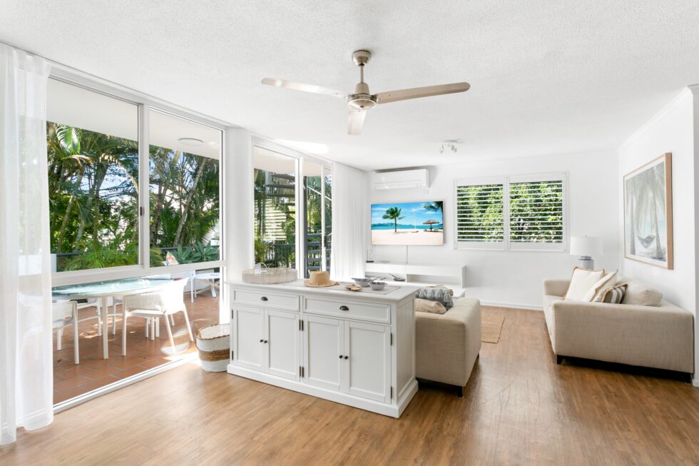 Elegantly decorated, all of our Two Bedroom Noosa Holiday apartments offer reverse cycle air conditioning in the living room, with ceiling fans, Foxtel business IQ with up to 130 streaming channels. Enjoy the convenience of a full-size kitchen with modern cooking appliances and laundry with a washing machine and dryer and a private balcony or courtyard. All apartments have unlimited free wifi access.