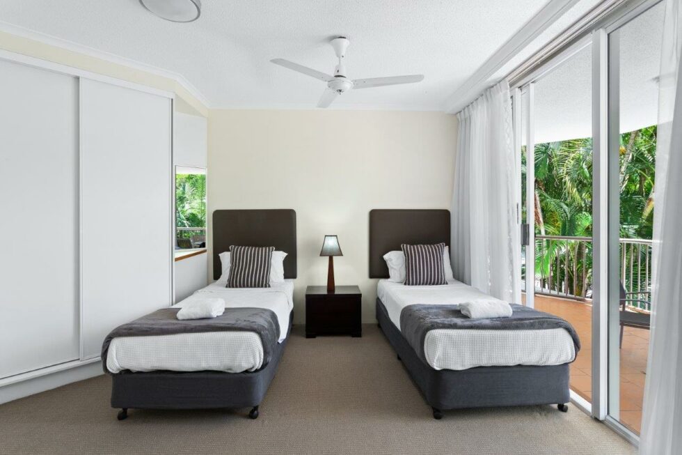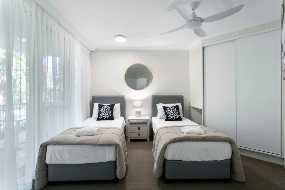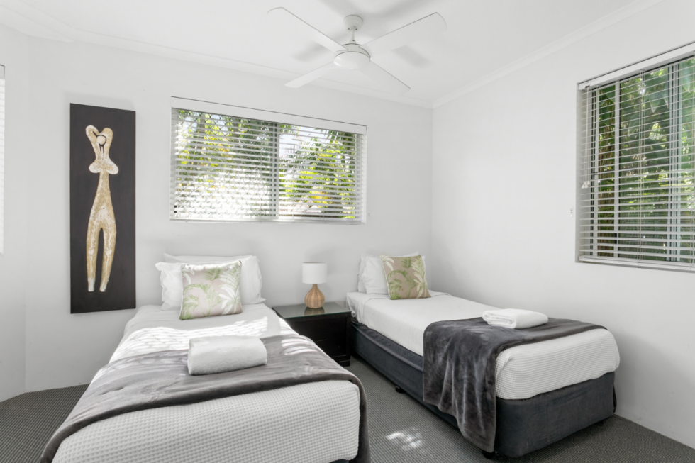 Our Noosa Two Bedroom self contained apartments feature a master bedroom with Queen sized bed and private ensuite. The second bedroom has twin beds (*Apartment 3 has two Queen Beds) and is serviced by a second bathroom and are suitable for a maximum of 4 guests.