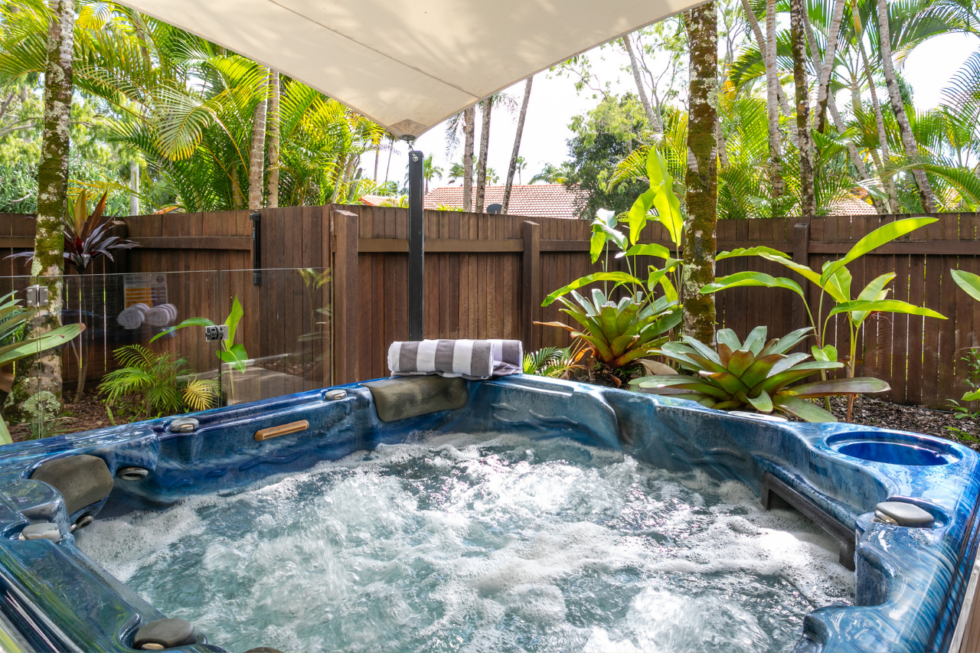 Our Sunshine Coast Two Bedroom Rooftop Spa holiday apartments have the added luxury of an exclusive use roof terrace with a therapeutic heated spa, BBQ, outdoor dining furniture & sun lounges. The rooftop terrace is accessed via a spiral staircase on the apartments balcony.